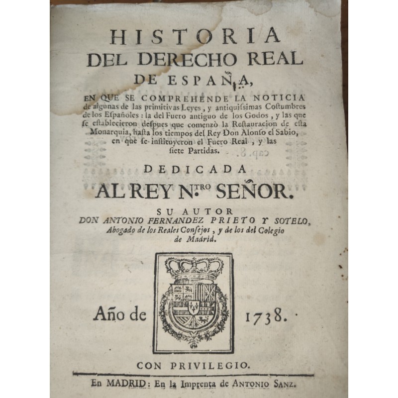 ANTONIO FERNANDEZ PRIETO Madrid 1738 Primera edición Imprenta Antonio Sanz. 455 páginas Encuadernación en pergamino de época .Tamaño 21 x 15 cm.